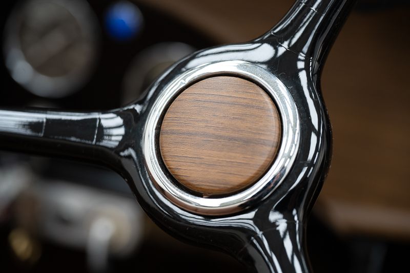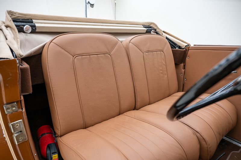 • Innenraum, Verdeck und Teppiche: restauriert mit Gebrauchsspuren, Verdeck in gutem Zustand, Teppiche in sehr gutem Zustand