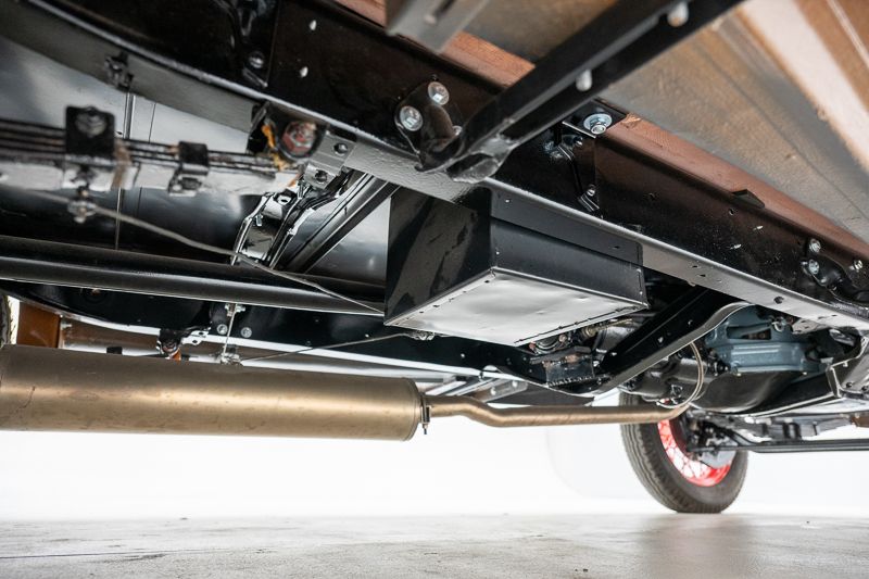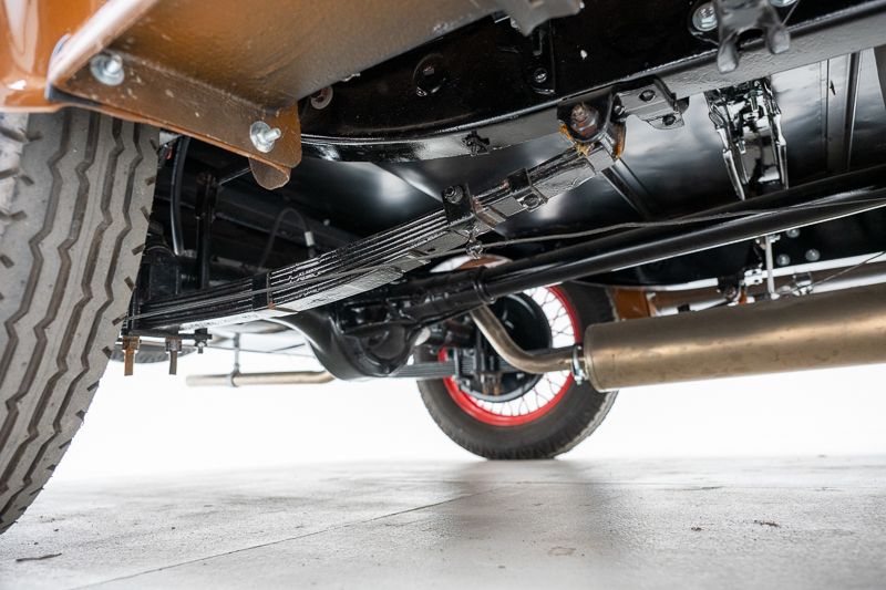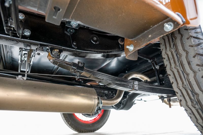 • Aufhängung und Achsen: Reparatur erforderlich — Spiel in den Achsschenkeln vorne, Splinte fehlen an Blattfederbefestigung, Fahrzeug steht rechts tiefer