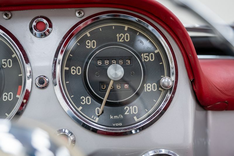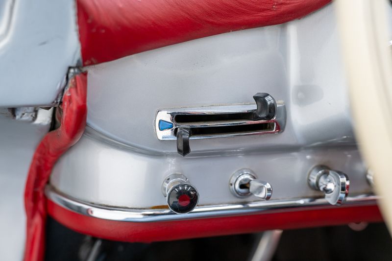Questo esemplare del 1962 deriva da una restaurazione professionale più datata e si presenta curato. La carrozzeria è stata riverniciata; la vernice mostra normali segni d’uso con zone più opache sulle porte.