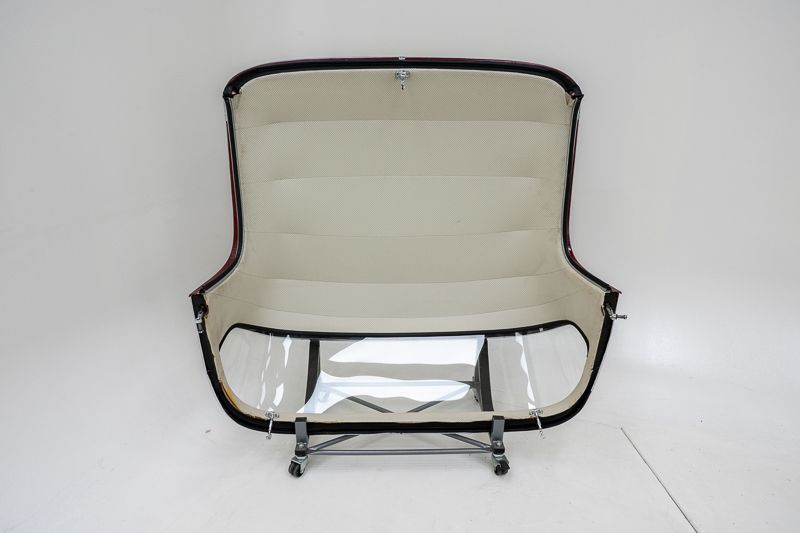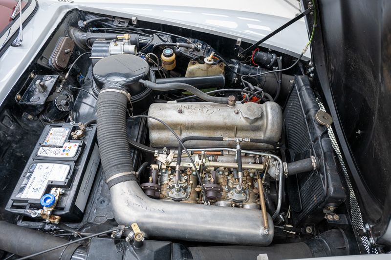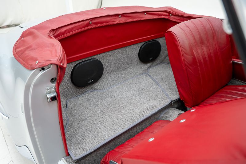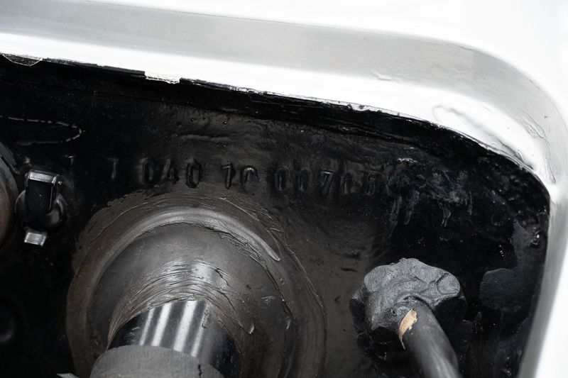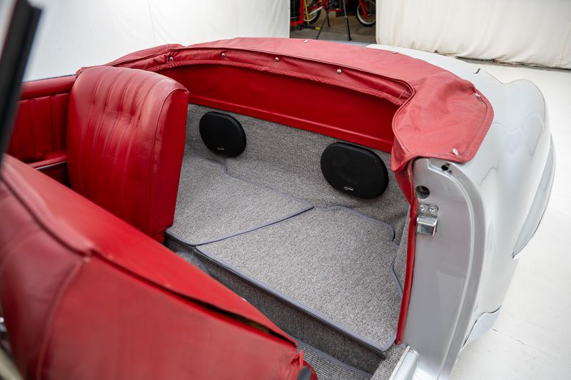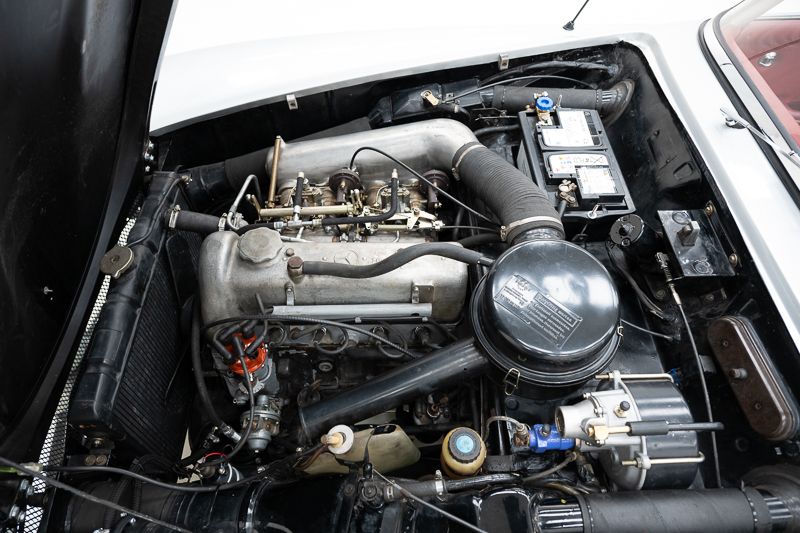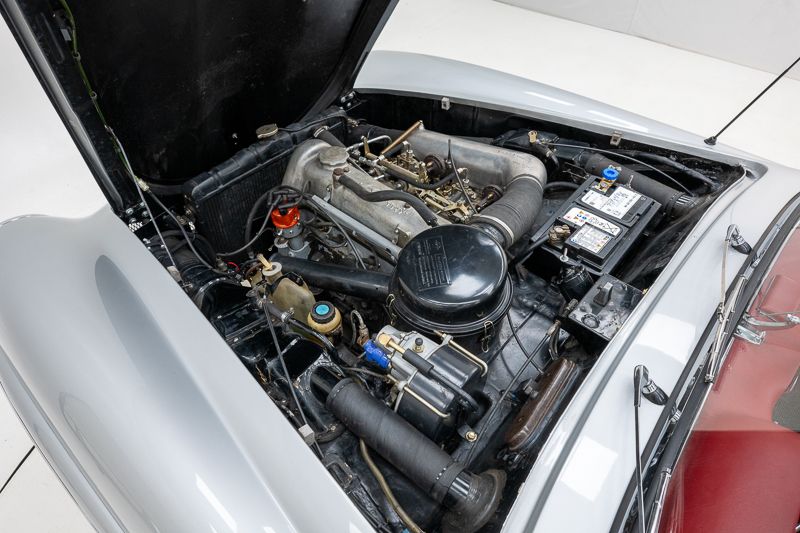 Interni restaurati in condizioni corrette e usate; tappeti con segni d’uso. L’hardtop removibile aumenta la versatilità. Il vano motore riflette una restaurazione più datata; numero di telaio originale e leggibile.