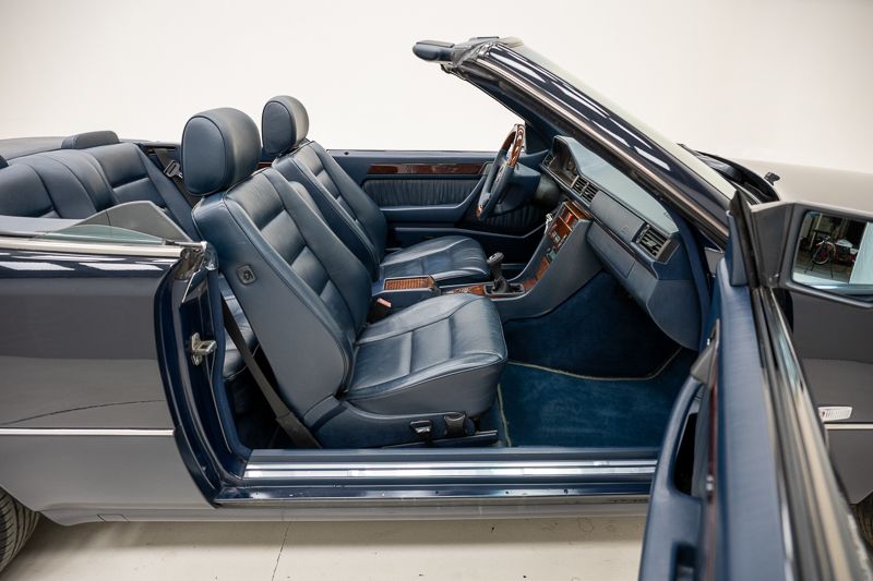 Dit exemplaar uit 1995 presenteert zich in een perfecte originele staat, met een professionele herlak en een zeer verzorgde algemene indruk. De vernieuwde kap en het nette interieur versterken het hoogwaardige karakter van deze W124 Cabriolet. De aanwezigheid van een manuele 5-versnellingsbak maakt het rijgevoel bovendien merkbaar directer en zorgt voor extra betrokkenheid achter het stuur — ideaal voor wie cabriorijden graag combineert met een meer analoge rijervaring.
