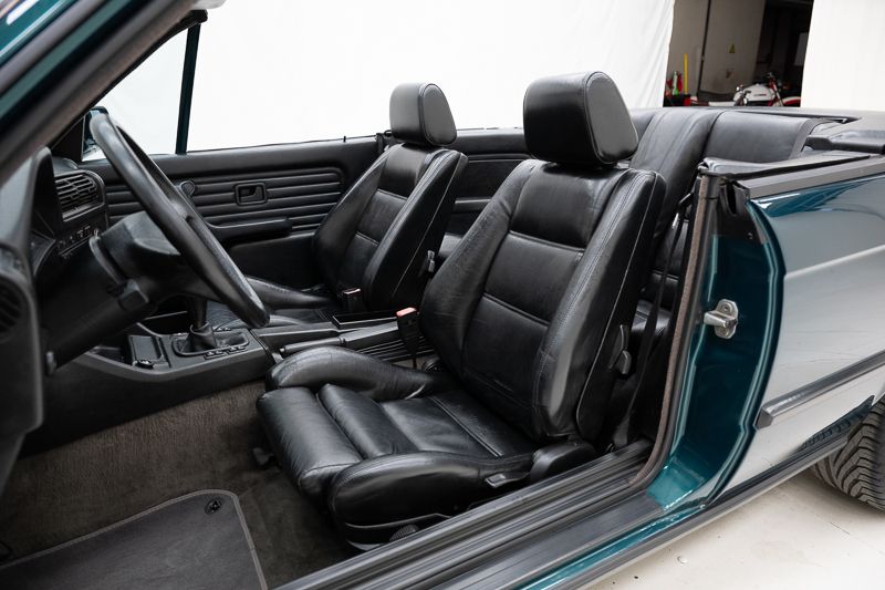 Dit exemplaar werd voor het eerst ingeschreven op 13/03/1991 en verkeert in een oudere originele staat. De wagen presenteert zich correct, met zichtbare gebruikssporen die passen bij leeftijd en karakter. De originele Lagunengrün Metallic lak geeft deze cabriolet een elegante en tijdloze uitstraling, perfect passend bij het klassieke karakter van dit model.