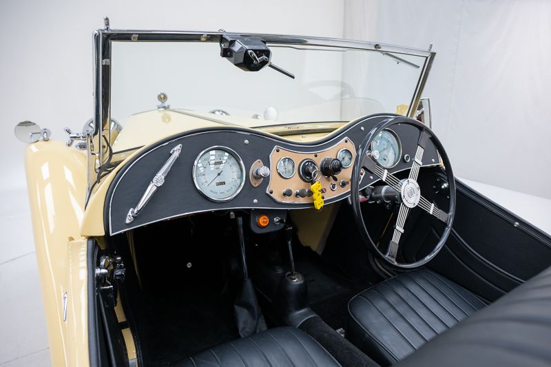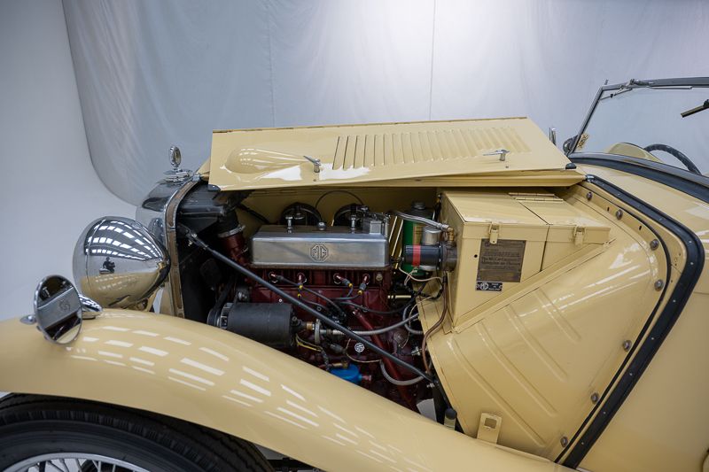 Dit exemplaar presenteert zich aantrekkelijk in een klassieke beige kleurstelling en geniet van een goede professionele restauratie. De vernieuwde kap en verzorgde afwerking zorgen voor een aangename combinatie van authenticiteit en gebruiksgemak, wat deze MG bijzonder interessant maakt voor liefhebbers van traditionele Britse roadsters.